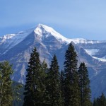 Das Gute an der Fahrt war, wir konnten die eine Stunde Zeitverlust nur durch überfahren der Grenze zu British Columbia wieder gut machen. Wobei das leider nur eine gedachte Stunde war, da wir sie bei der Rückfahrt wieder einbüßen müssen. Der Berg selbst war schon 20km vor dem Ziel zu erkennen, da dieser mit seiner weißen Krone hervorstach. Bei einer Höhe von 3954m ist das ja auch nicht verwunderlich. Je näher wir dem Ziel kamen, desto atemberaubender sah der Berg aus.