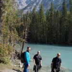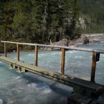 Nach dieser Erholung führte uns der Weg weiter über einen Teil des Sees, welcher ausgetrocknet war. Hier ging es auch über nur halb befestigte Wege und kleine Brücken (welche je nur von einer Person überquert werden durften). Auf Grund der fortgeschrittenen Zeit und der Erschöpfung entschlossen wir uns sicherheitshalber kurz vor 14 Uhr (bzw. 13 Uhr Zeit in BC) sicherheitshalber die Rückkehr anzutreten. Es ist ja nicht allein nur der Rückweg zu Fuß zu bewältigen, wir müssen ja auch noch zurück nach Jasper.