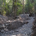 Der Weg führte uns zuerst am Fluss entlang durch einen Wald mit einer Art Mammutbäume. Nach den ersten 5 km kamen wir an den See. Dieser war auch wunderschön gelegen. Auf dem Weg am See entlang erspähten wir am Rand ein Schild ACHTUNG Steinlawinen Gefahr, hier war der Weg von einigen Wasser- und Felsabgängen zerstört wurden. Nichts destotrotz fanden wir einen Weg hindurch und halbrund um den See. Fast am Ende des Sees sahen wir eine schöne Stelle und setzten uns direkt an den See. Hier verharrten wir ca. 20 Minuten und genossen die Natur. Bei den Jungs kam natürlich der Spieltrieb durch und so sprangen ein paar flache Steine über den See.