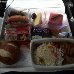 Nach dem wir endlich an Board konnten, ging es auch schon los. Leider war fast auf dem gesamten Flug nichts als Wolken zu sehen. Nur über Grönland konnten wir endlich mal etwas von der beeindruckenden Landschaft sehen. Im Gegensatz zu vielen Mensas oder öffentlichen Kantinen gab es im Flugzeug gutes und vor allem reichlich Essen.