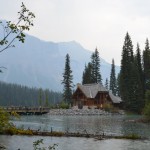 Nach 5 Minuten Autofahrt waren wir am See, hier einen Parkplatz zu finden war eine Herausforderung, die wir meistern konnten. Nach einem kurzen Weg durch den Wald erspähten wir einen anderen kleinen See. Denn ursprünglichen Weg zur Lodge, welchen wohl sehr lange keiner mehr gegangen war (da der Weg fast zugewachsen war) konnten wir leider nicht nehmen. Also entschieden wir uns zurück zum Parkplatz und wie alle anderen Touristen den direkten Weg über die Brücke zu nehmen. Leider hat es hier dann richtig angefangen zu regnen, daher konnten wir den wunderschönen Emerald-Lake nur im Regen bewundern.
