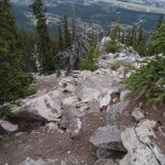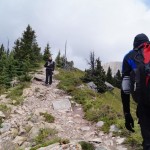 Um sag und schreibe 10:00 Uhr konnten wir endlich los. Sogar die Putzleute standen schon bei uns in der Tür. Es ging 4 km mit dem Auto an den Fuß des Lady Macdonald Mountain. Nach dem ersten Kilometer hatten wir auch den richtigen Weg gefunden. Nun hieß es steil nach oben (1300 m auf 3,5 km). Bei diesem Aufstieg sahen wir wie die letzten Tage auch Streifenhörnchen (große und sehr kleine) und Eichhörnchen. Auch überholten uns am Beginn des Anstieges (zur Erinnerung 1300 m auf 3,5 km) eine Jogger Gruppe, welche fast ausschließlich aus Frauen bestand. Wie aber zu erwarten war, haben wir diese Gruppe relativ schnell wieder eingeholt. Ähnlich verhielt es sich auch mit anderen Wanderern. Nachdem wir 2/3 der Höhe und der Entfernung hinter uns hatten zogen leider Regenwolken auf. Aus Vernunft und auf Grund des kalten Windes entschlossen wir und den Rückweg anzutreten. Der Abstieg ging wie immer auch sehr stark in die Beine. Fast unten angekommen war das Wetter wieder aufgegangen, was uns doch etwas geärgert hat.