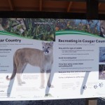 Nachdem wir beim Weg zurück gleich den richtigen Weg gefunden haben, entdeckten wir ein Schild zum Thema Cougar (eine große Katze, Schelm wer was anderes Dachte!!!). Hier wurde und auf Grund der Tafel auch klar, warum alle anderen mit Bären spray unterwegs waren. Denn dieses wurde auch gegen Cougars empfohlen. Des Weiteren konnten wir hier (nachdem wir wieder aus der „Gefahrenzone“ raus waren) auch sehen, wie man sich bei einem Cougar verhalten soll. 🙂