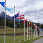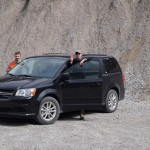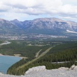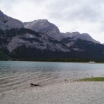 Am Auto angekommen beschlossen wir uns noch den Stausee über Canmore anzusehen, leider mussten wir dafür durch die ganze Stadt fahren. Dabei fiel uns auf, dass alle Läden offen waren, obwohl heute Sonntag war. Die Straße zum Stausee war ein reiner Kiesweg, welcher aber hier sogar als Highway ausgeschrieben ist. Oben angekommen machte Anja einige Bilder, aus dem Auto war gut zu sehen, dass es nicht einfach war sich im Wind hier oben zu halten. Weiter ging die Fahrt immer entlang der Straße an einem aufgeschütteten Wall. Wir rätselten fast 15 Minuten, was es mit dem Wall auf sich hatte, doch dann fuhren wir über den Wall über eine Brücke und sahen, dass dies ein künstlicher Fluss war, welcher sogar durch einen Felsen ging. Kurz nach der Brücke kamen wir an einen See, dieser dient als Trinkwasser für Canmore. Hier machten wir einen kurzen Halt und ein Paar Fotos. Dabei ließen es sich auch ein paar Jugendliche mit einem Jeep nicht nehmen einen sehr steilen Kiesweg hoch zufahren, bis es nicht mehr weiter ging. Auch Alex versuchte das (siehe Bild) –> Spaß beiseite die Spuren sind nicht von uns 😛 .