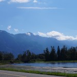 Auf der Fahrt selbst begegneten uns natürlich wie immer viele „Fallen“ für Touristen. Einmal sind leider auch wir reingefallen. Denn LakeFalls klang für uns interessant, am Ende war es eine sehr enge Straße mit „NIX“ am Ende. Den einzigen weiteren Ausflug vom Freeway machten wir in Hope, wo der erste RAMBO Film gedreht wurde. Hier sind wir ca. 30km parallel zum Freeway gefahren, bevor es wieder auf diesen ging. Auf dem kleinen Ausflug sind wir immer mit Blick auf den parallel laufenden Fraser River gefahren. Sehr lange haben wir nach einer Zufahrt oder einem tollen Blick auf den Fluss gesucht. Nach langem Suchen und auch ein paar Metern zu Fuß und über Steinen kamen wir auch ans Wasser. Hier konnten wir ein paar Minuten entspannen und den Blick über die Berge schweifen lassen, bis es wieder zurück ins Auto ging. Dieser Fluss wird uns nun bis Vancouver begleiten.